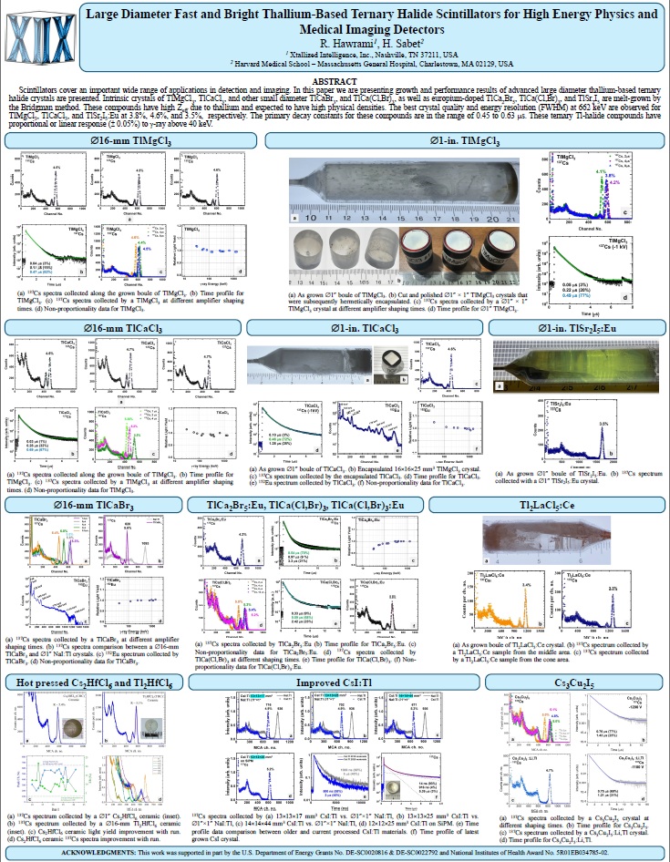 - Large-Diameter Bulk Crystal Growth and Scintillation Characterization of Thallium-Based Ternary Halide Crystals for Detection and Imaging. R. Hawrami, E. Ariesanti, H. Sabet, Crystals 15 (2025) 502.